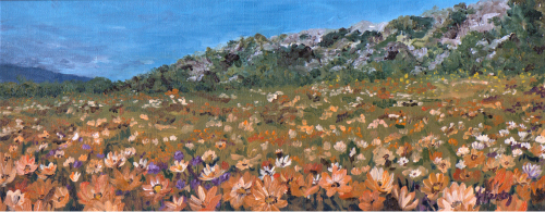 Westcoast Splendor | Sold Medium: Oil Size: 500 x 200 Stretched Canvas Date created: 2021 Every spring the Westcoast region of Cape Province is adorns with carpets of spring flowers.