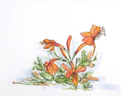 Honeysuckle | Available Medium: Watercolour and pen Size: 400x 350 Framed Date created: 2022 Sketched en plein air in Bonnievale, outskirts of Cape Town.