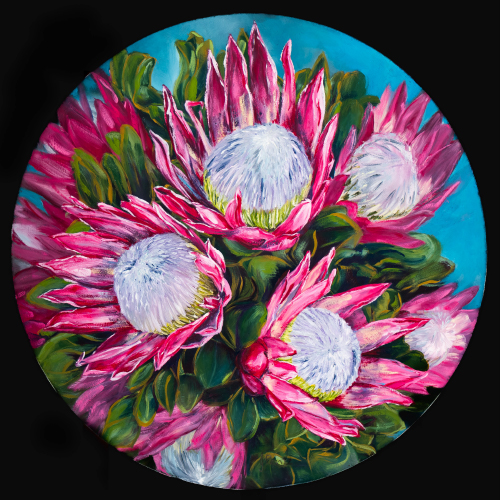 Plethora of Protea | Sold Medium: Oil Size: Round 420 diametre boxed Date created: 2022