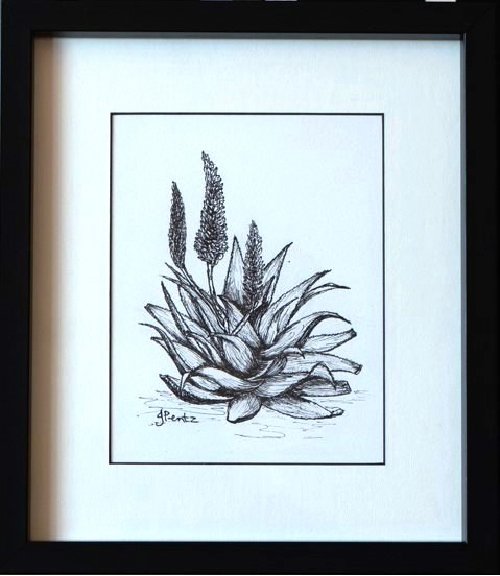 Aloe sketch 1 | Available Medium: Permanent marker Size: 265 x225 framed Date created: 2022 Drawn en plein air